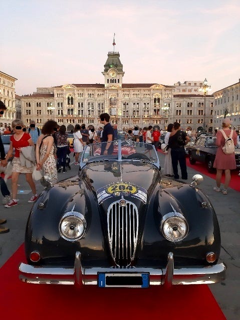 Sissi and Maximilian are smaller monuments than the Florentine Cosimo. The literary celebrities, Joyce, Svevo and Saba, pop up quietly near you as if they were just walking. Trieste’s hero is Guglielmo Oberdan, who lived in the time of irredentism, as well as Cesare Battisti from Trentino. The main square, named after the Unification of Italy, can mix up all your perspectives. Forget about sober Turin: this one is imperial. In 24 hours can change its look from vintage cars to stands dedicated to scientific research. And if you want to follow the Barcolana, the yearly sailing regatta, it offers you a nice truck with a monitor parked in the corner. Trieste looks very sporty. Sailors and cyclists in uniform roam everywhere (one was even among those 3 in need of a ticket to Gorizia).