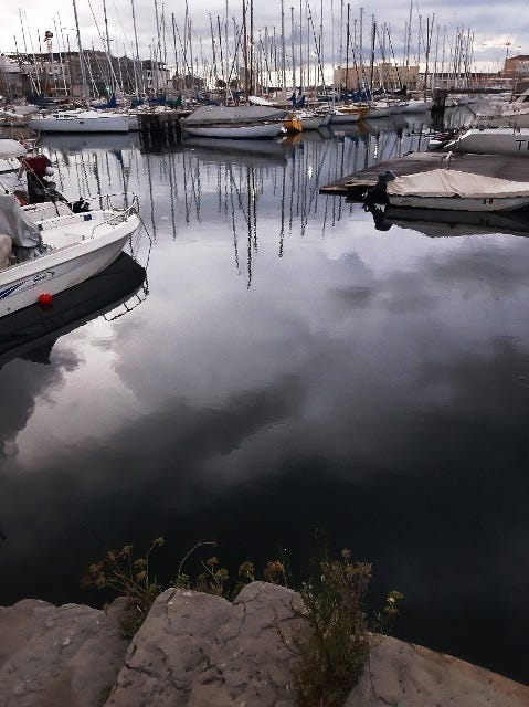 Lei si è preparata ad accogliermi con uno spettacolo di droni, che nel cielo buio pesto sopra il mare si sono uniti in forme tipiche degli ambienti marini (sirena, conchiglia, nave, ecc) accompagnati dalla lettura di un testo. Non so dire di più perché dovevo andare a fare il check in, e ho avuto solo il tempo di fermarmi in quella gran piazza energizzata dal ritmo di Straight for the heart dei Toto. Anche voi siete sensibili alla musica e ai suoi mille motori turbo? Mettete su il disco dei Toto, spegnete le luci e proseguite la lettura con sottofondo musicale ⏬